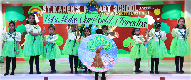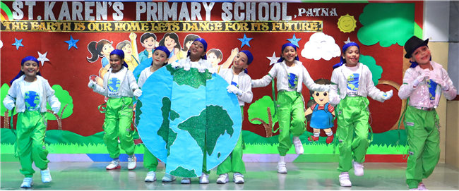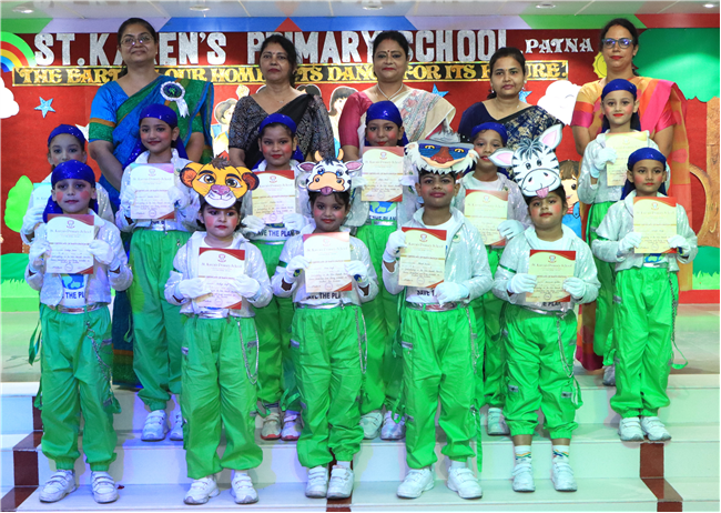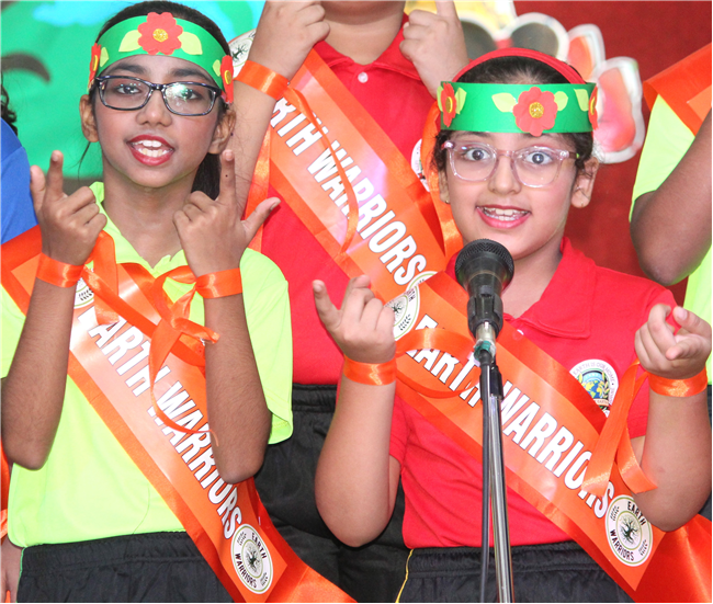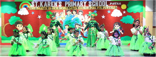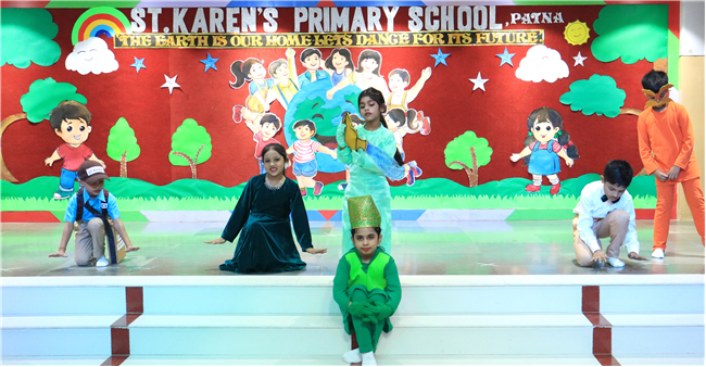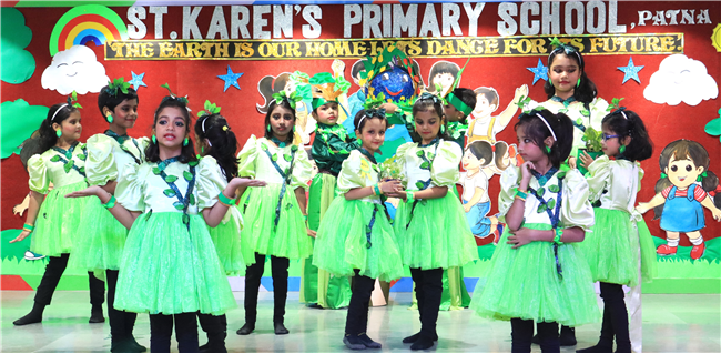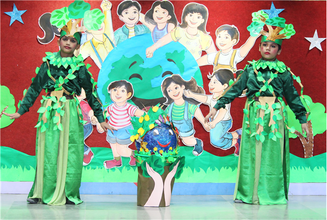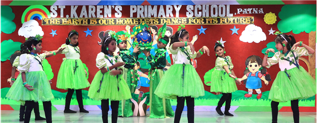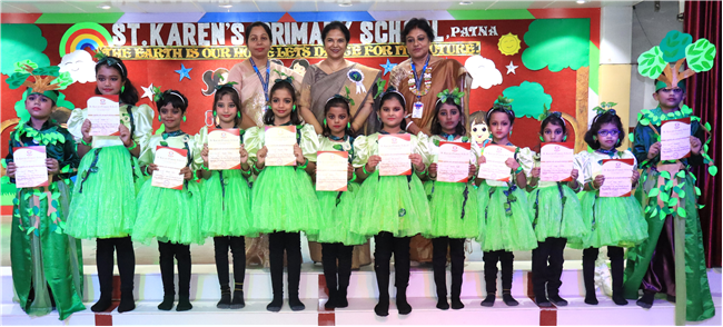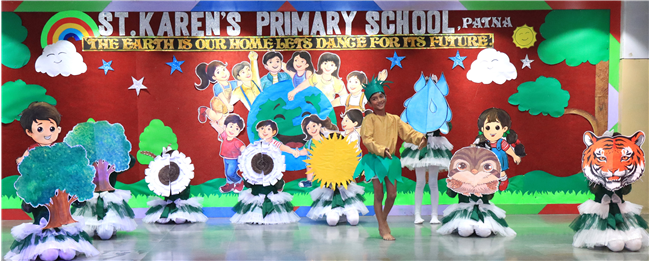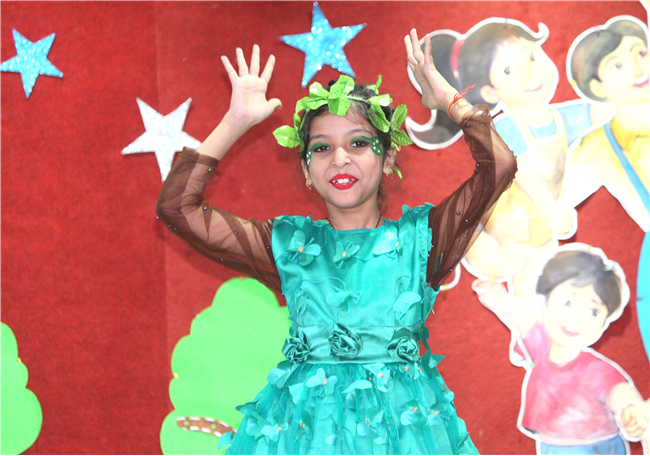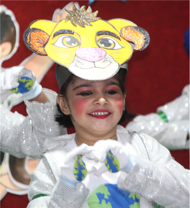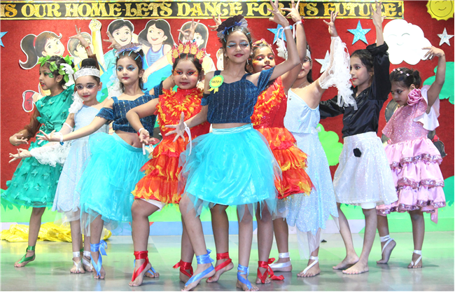 Dressed in colorful and eco-friendly costumes, the little ones looked dazzling on stage. Their outfits were creative and eye-catching and their beautiful props — including a glowing model of the Earth — added life and charm to their performances. The children showcased various ways to protect our planet by planting trees, saving water, saying no to plastic and keeping their surroundings clean.The marvellous performances truly touched every heart, reminding everyone that –“The Earth is our treasure; let’s care beyond measure!”Their dances were not just acts but promises — to make the Earth greener, cleaner and happier for all.