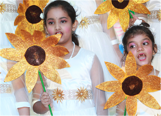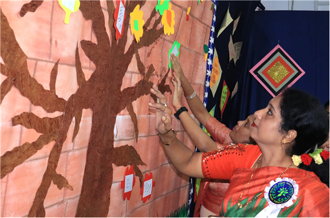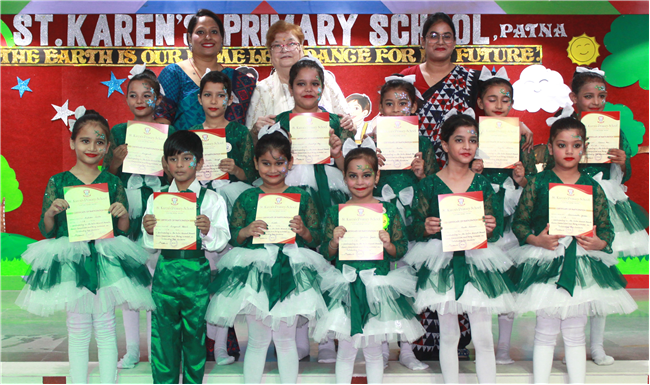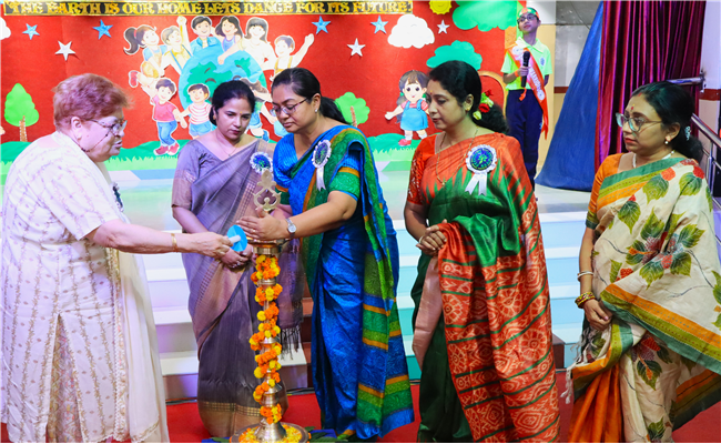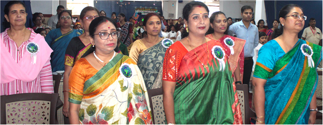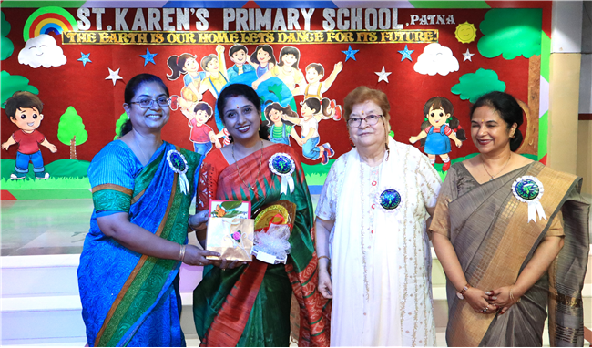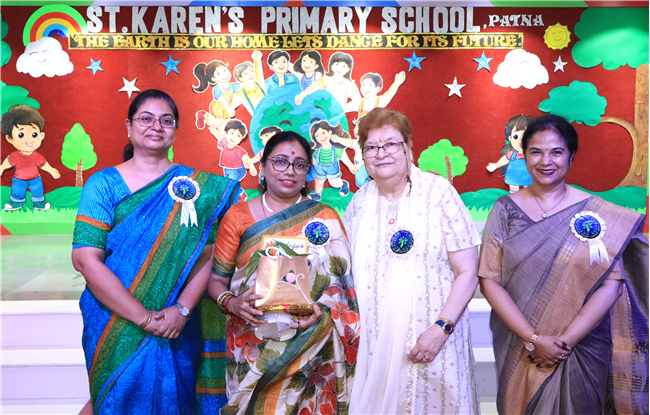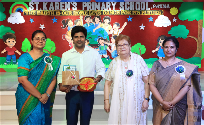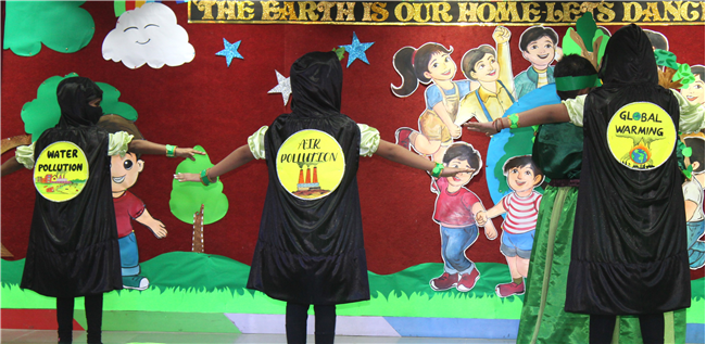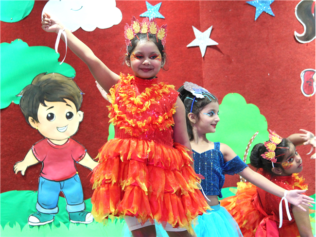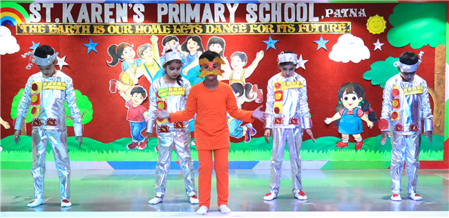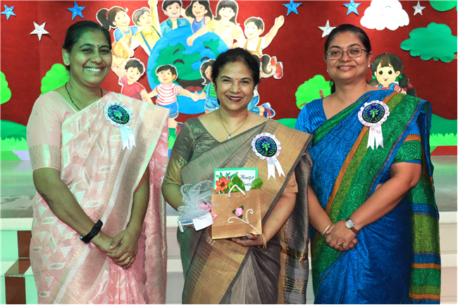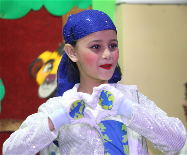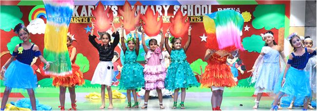 Dressed in colorful and eco-friendly costumes, the little ones looked dazzling on stage. Their outfits were creative and eye-catching and their beautiful props — including a glowing model of the Earth — added life and charm to their performances. The children showcased various ways to protect our planet by planting trees, saving water, saying no to plastic and keeping their surroundings clean.The marvellous performances truly touched every heart, reminding everyone that –“The Earth is our treasure; let’s care beyond measure!”Their dances were not just acts but promises — to make the Earth greener, cleaner and happier for all.