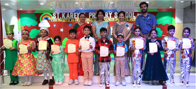 At St.Karen’s Primary School on 11th October 2025, the Inter-Branch Thematic Dance Competition was a vibrant celebration of love for our planet. All the branches of St. Karen’s School participated enthusiastically, making the event a grand success. Children of Standard 1 and 2 performed gracefully on the theme “Earth is Our Home, Let’s Dance for Its Future.” Through their rhythmic steps and expressive moves, they conveyed powerful messages and catchy slogans about saving our Earth.