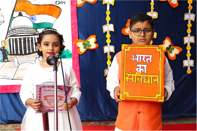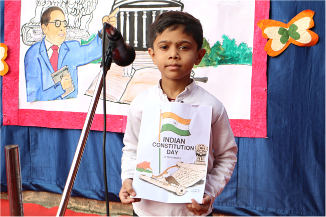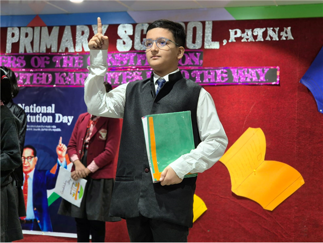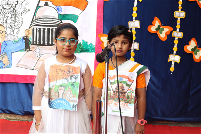 Students presented a meaningful and well-coordinated special assembly that highlighted the importance of the Indian Constitution and the contributions of Dr. B. R. Ambedkar. The programme included inspiring speeches, poems, thought-provoking facts and a creative presentation that helped students understand the values of justice, liberty, equality and fraternity. A quiz added excitement, allowing children to apply their learning in an engaging way.