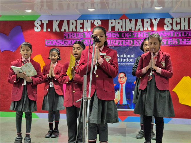 St. Karen’s Primary School celebrated Indian Constitution Day on 26th November 2025 with great pride and enthusiasm. The theme for this year, “True Weavers of the Constitution – Conscious and Spirited Karenites Lead the Way,” beautifully reflected the spirit of the day.