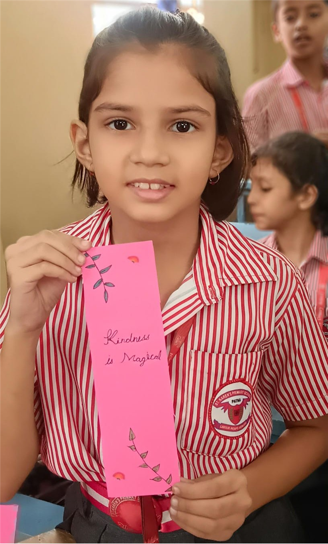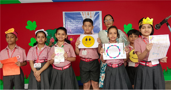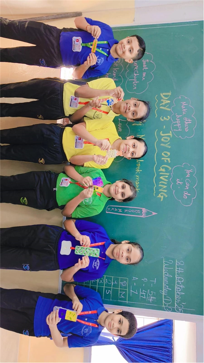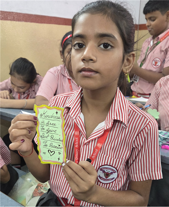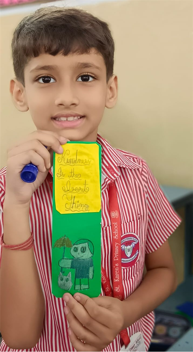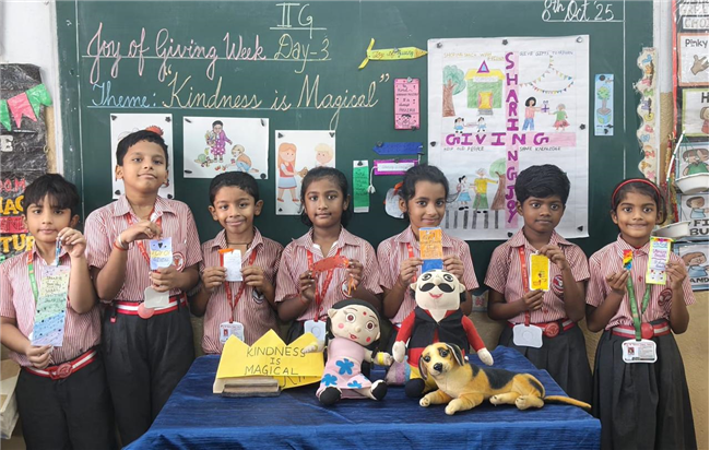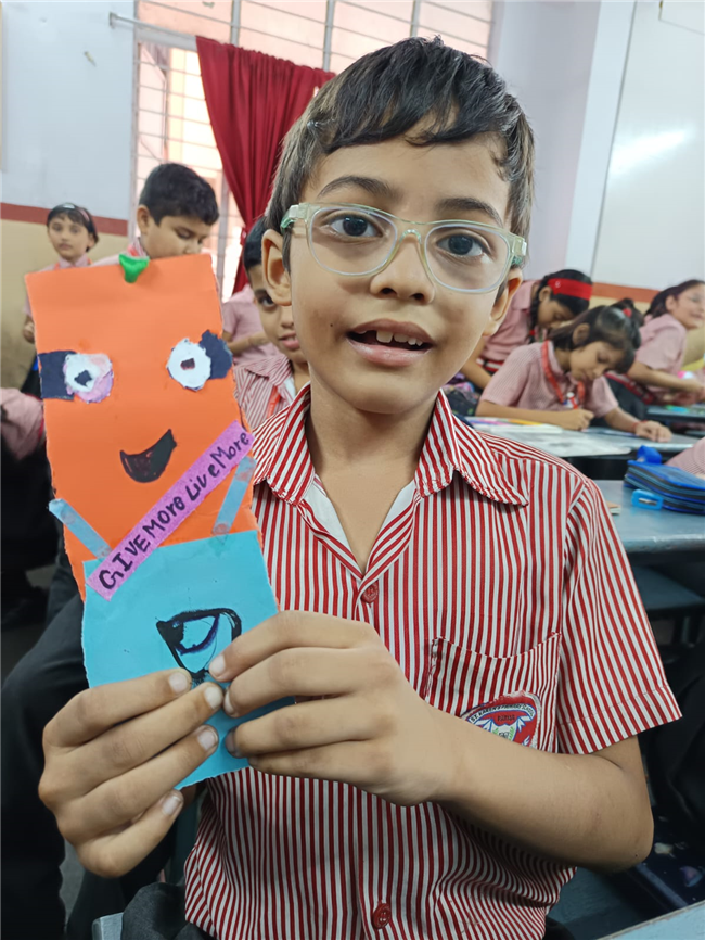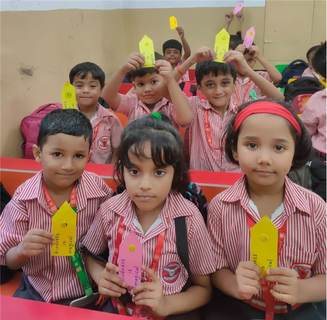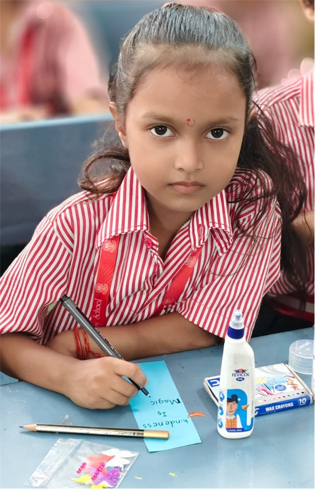 During the zero period, teachers narrated stories using props and puppets, helping children understand that even a small act of kindness can create ripples of joy. Students then made colourful bookmarks and wrote thoughtful quotes .The activities fostered imagination, compassion and gratitude—reminding everyone that kindness shared is happiness multiplied.