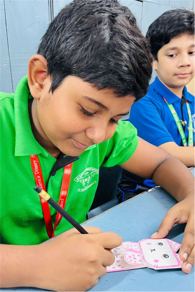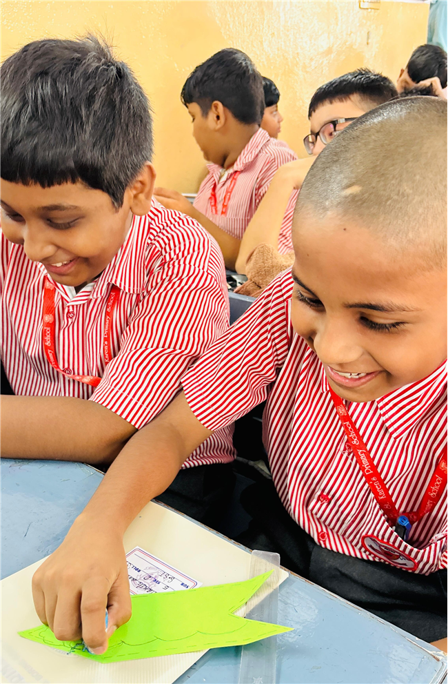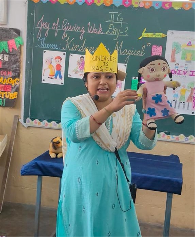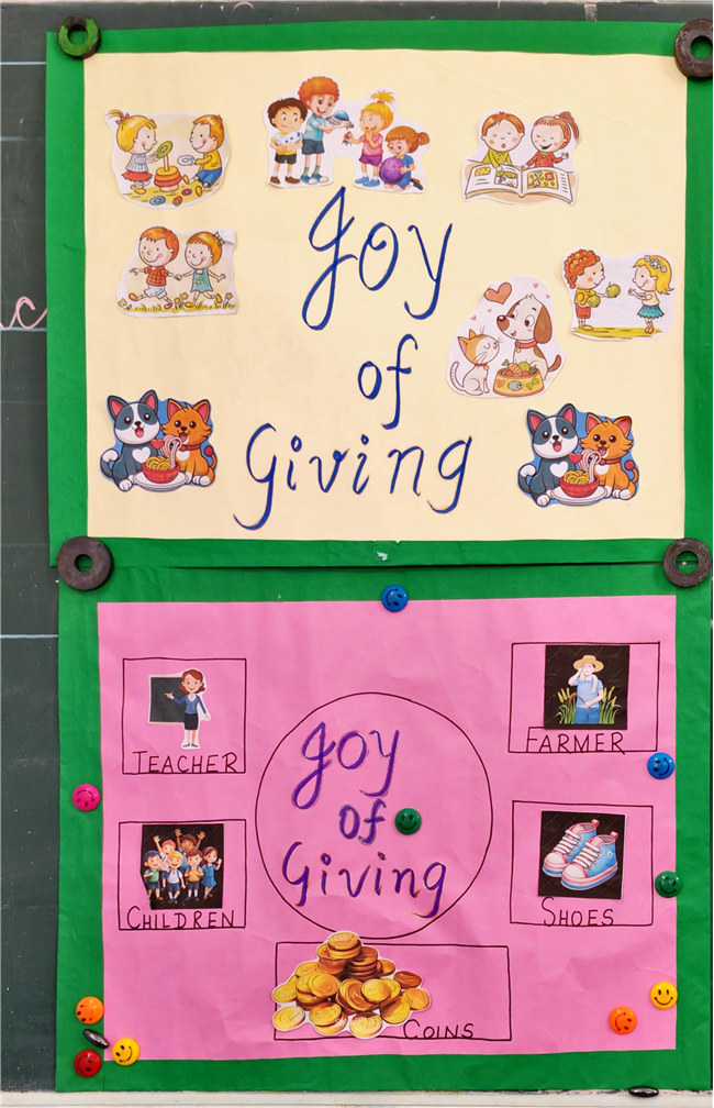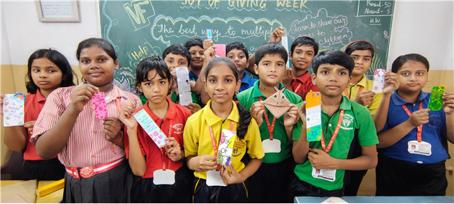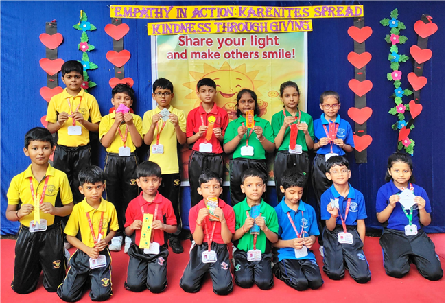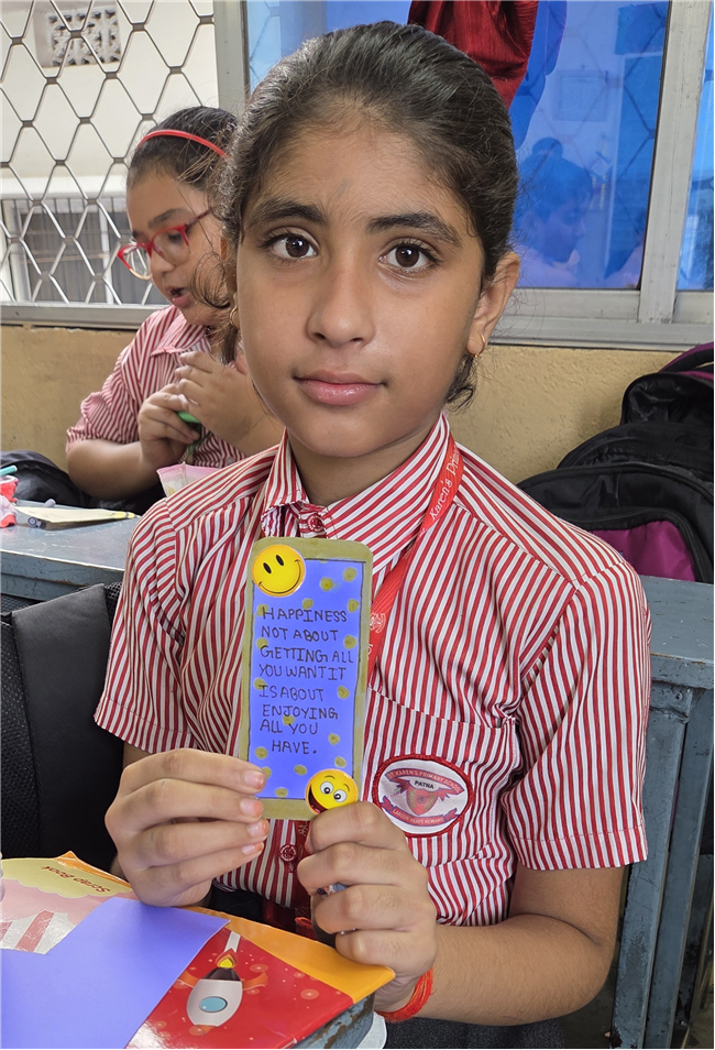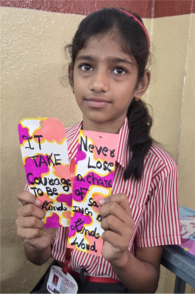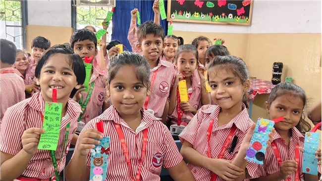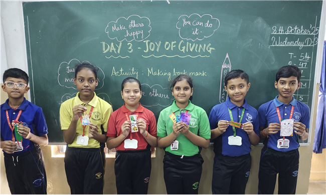 During the zero period, teachers narrated stories using props and puppets, helping children understand that even a small act of kindness can create ripples of joy. Students then made colourful bookmarks and wrote thoughtful quotes .The activities fostered imagination, compassion and gratitude—reminding everyone that kindness shared is happiness multiplied.