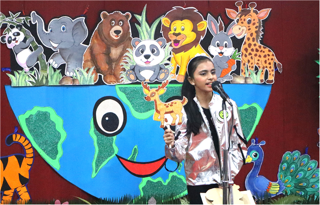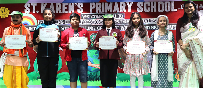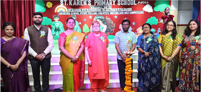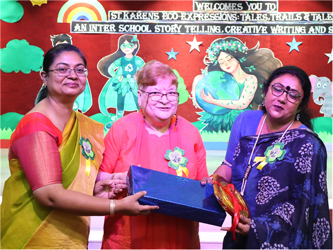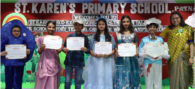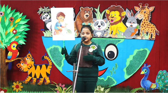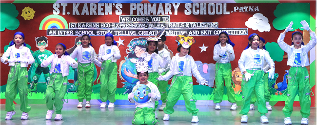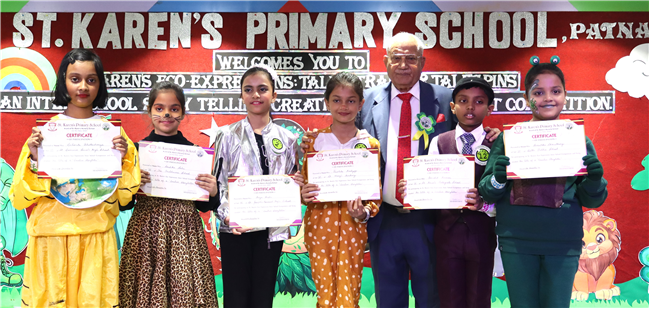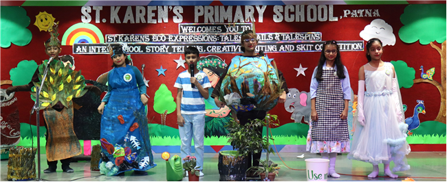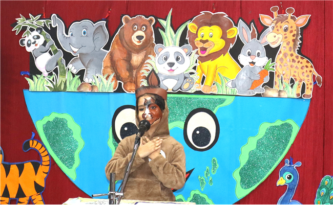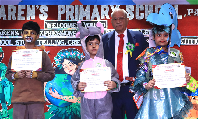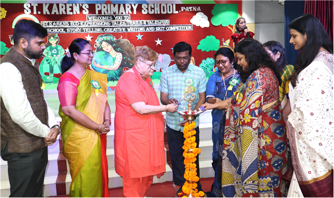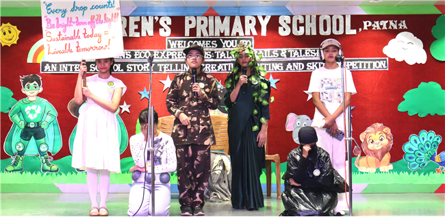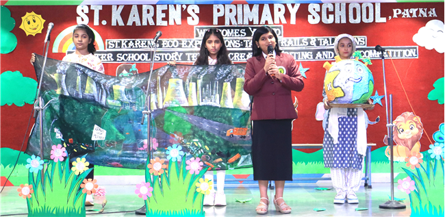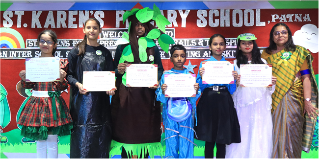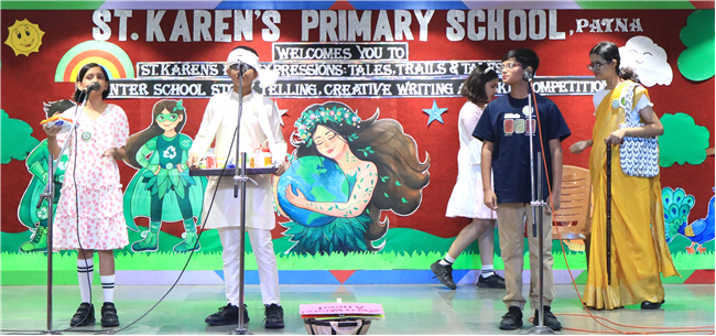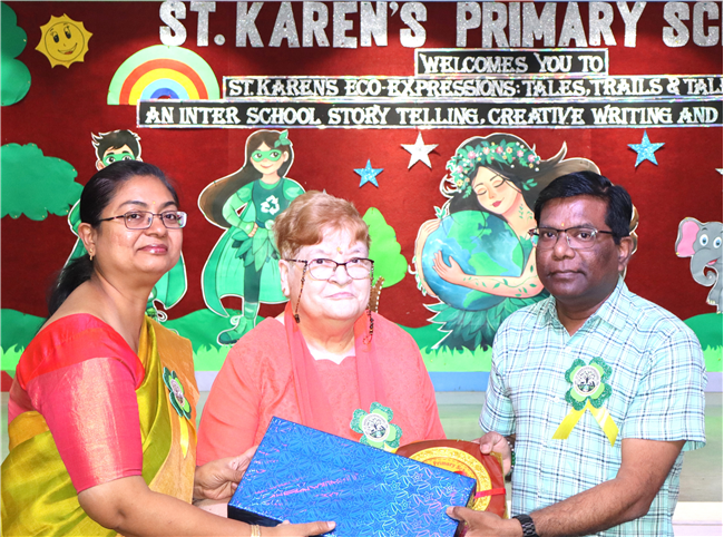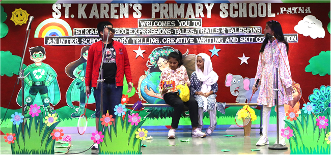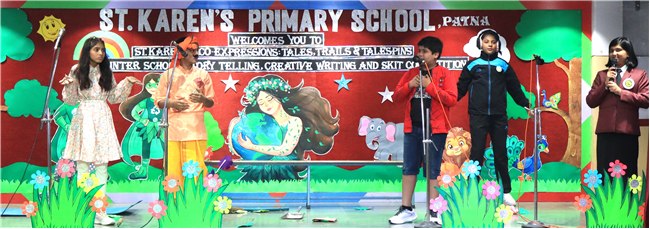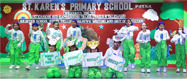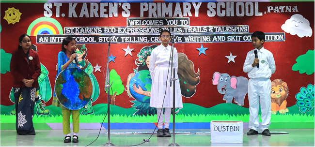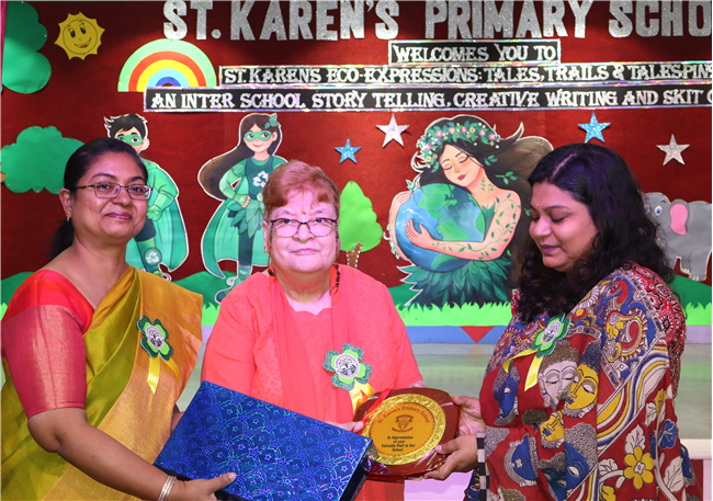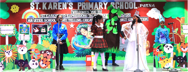 The programme began with the ceremonial lighting of the lamp by dignitaries and the Headmistress, setting an inspiring tone for the day. Participants from 12 reputed schools showcased their talents in Storytelling, Creative Writing and Skit Presentations, focusing on eco-friendly themes such as Save the Earth, Save Animals and Save the Environment.