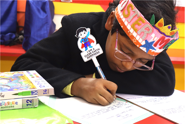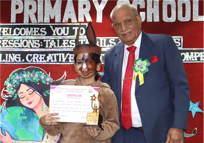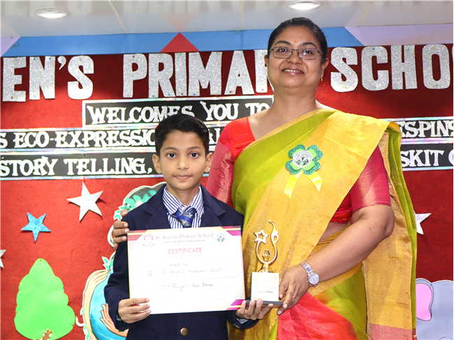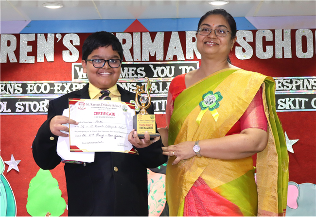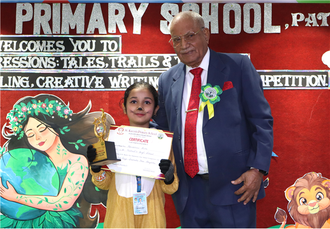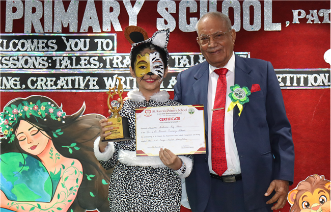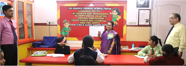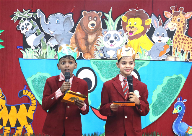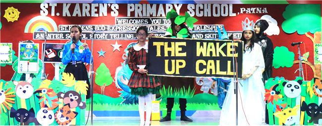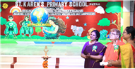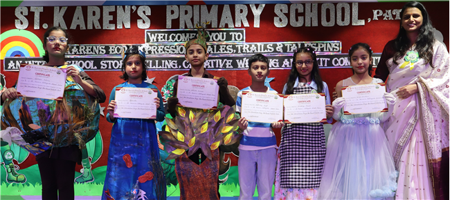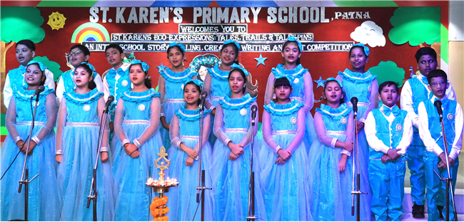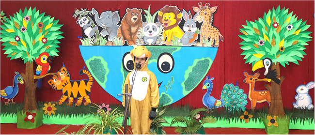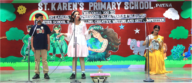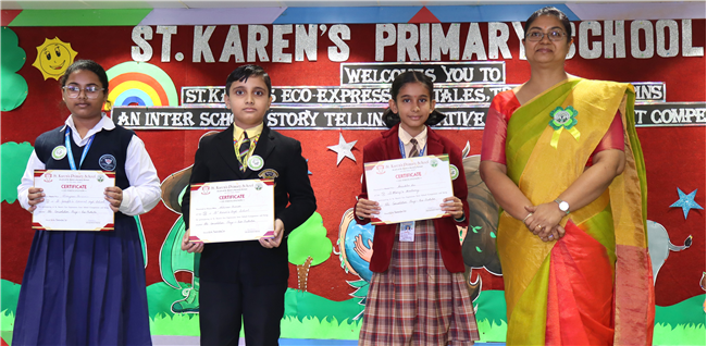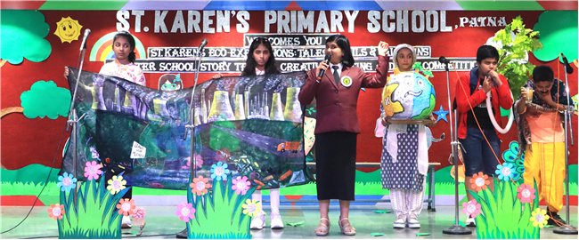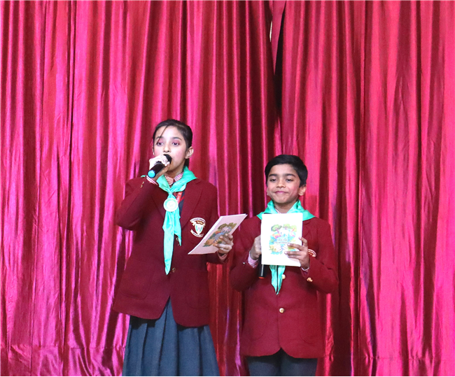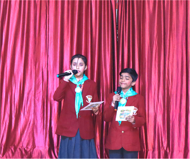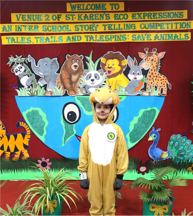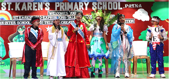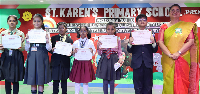 The programme began with the ceremonial lighting of the lamp by dignitaries and the Headmistress, setting an inspiring tone for the day. Participants from 12 reputed schools showcased their talents in Storytelling, Creative Writing and Skit Presentations, focusing on eco-friendly themes such as Save the Earth, Save Animals and Save the Environment.