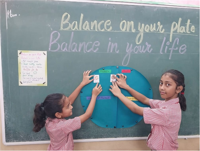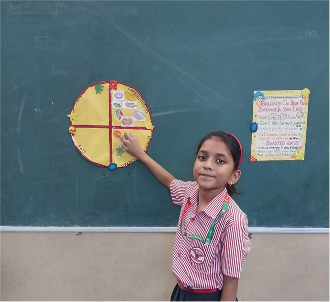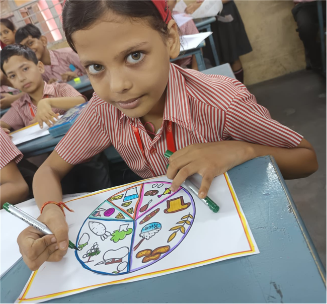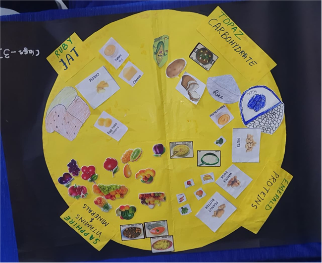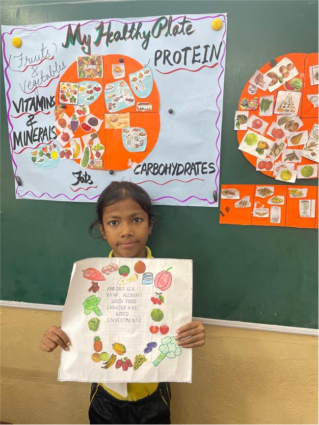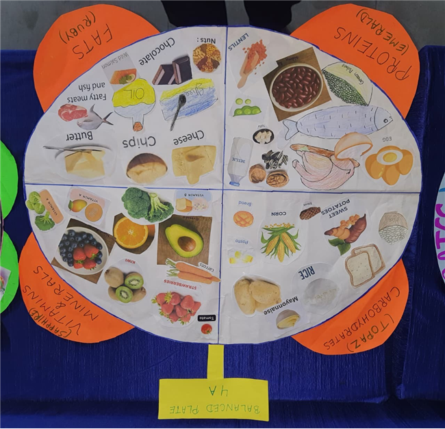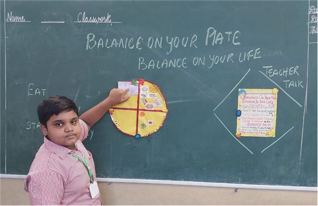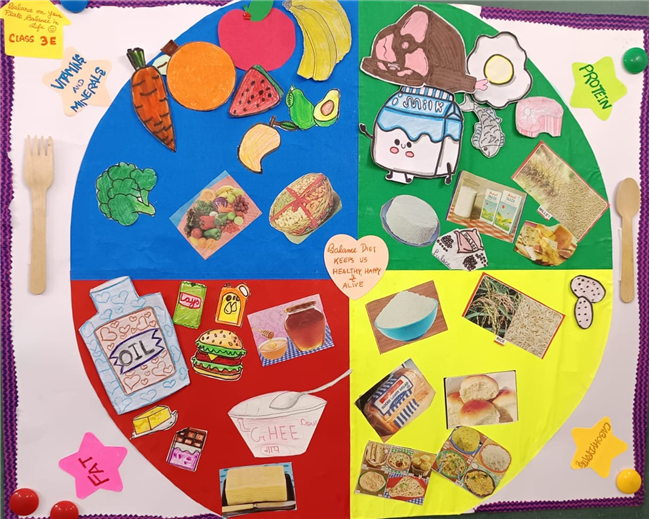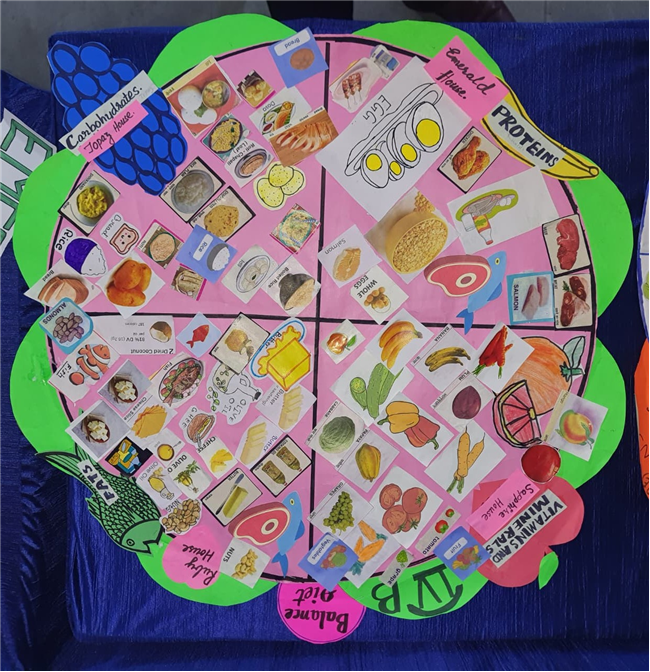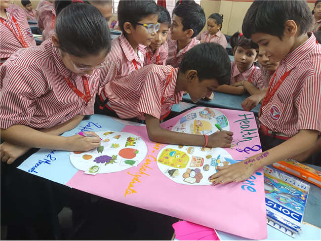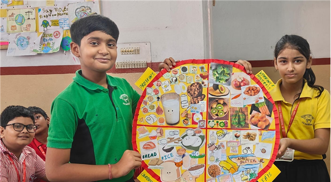 Students enthusiastically participated in the “Healthy Plate” project, designing colourful plates with carbohydrates, proteins, fats and vitamins & minerals to showcase the essence of balanced meals .The colourful plates became a vibrant reminder of how balanced meals fuel growth and energy. These plates were proudly displayed, turning the school corridors into a gallery of health and creativity.