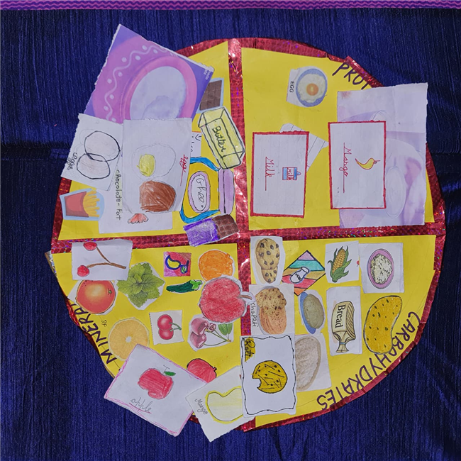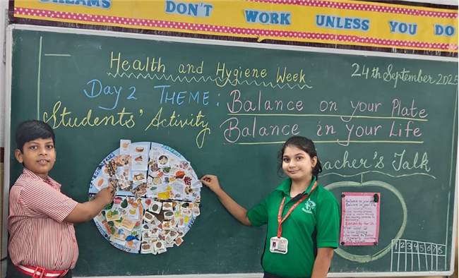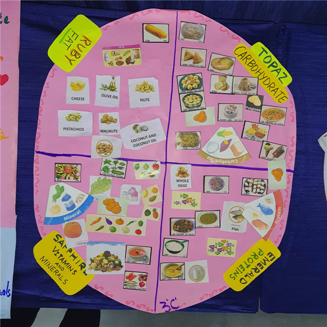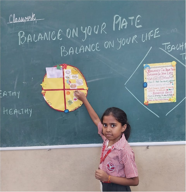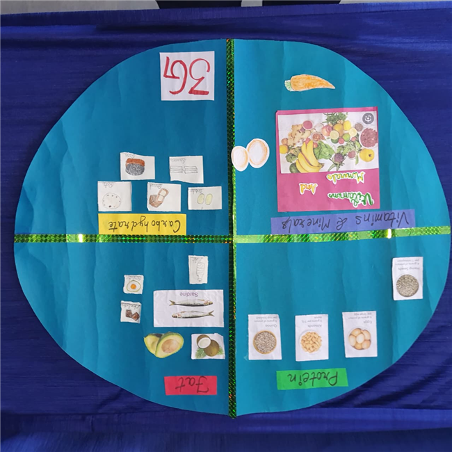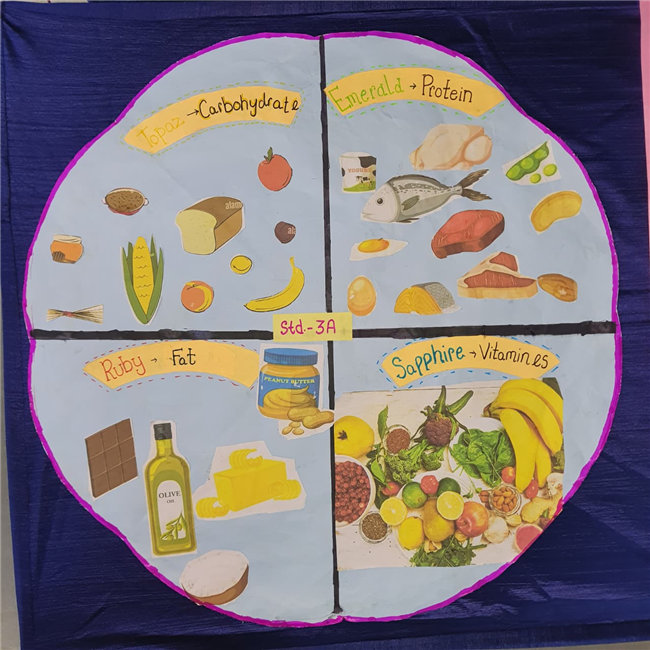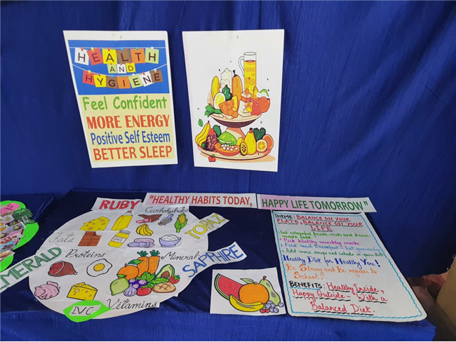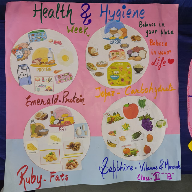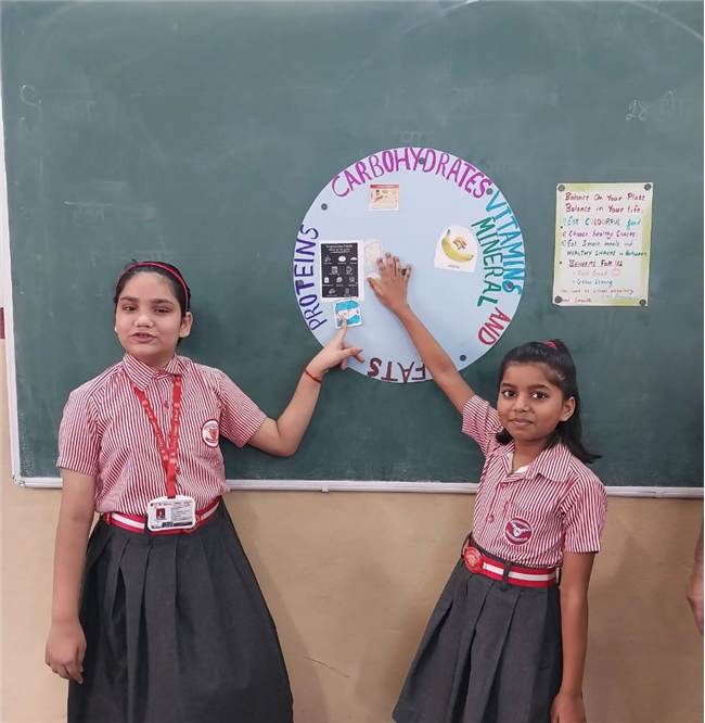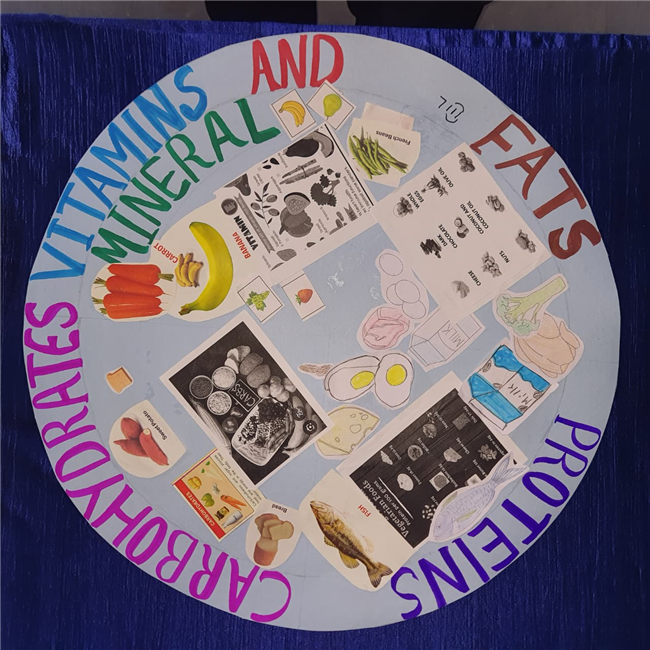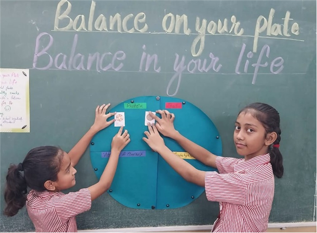 Students enthusiastically participated in the “Healthy Plate” project, designing colourful plates with carbohydrates, proteins, fats and vitamins & minerals to showcase the essence of balanced meals .The colourful plates became a vibrant reminder of how balanced meals fuel growth and energy. These plates were proudly displayed, turning the school corridors into a gallery of health and creativity.