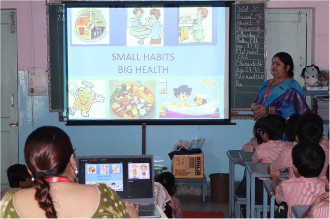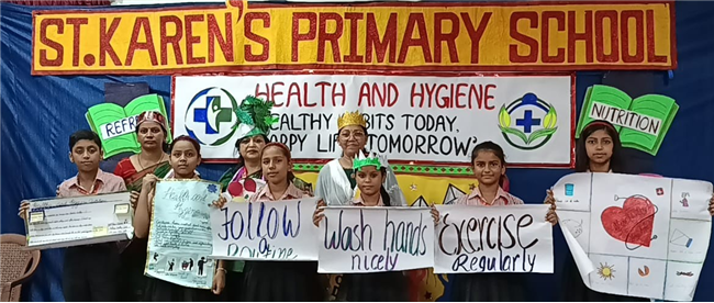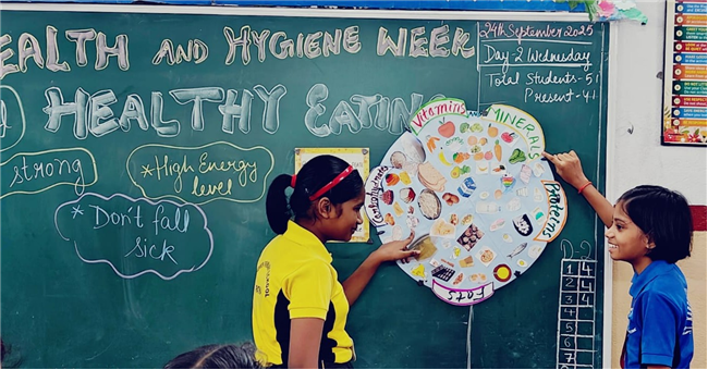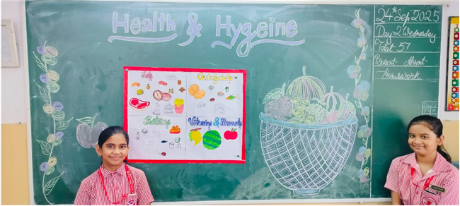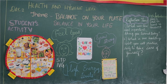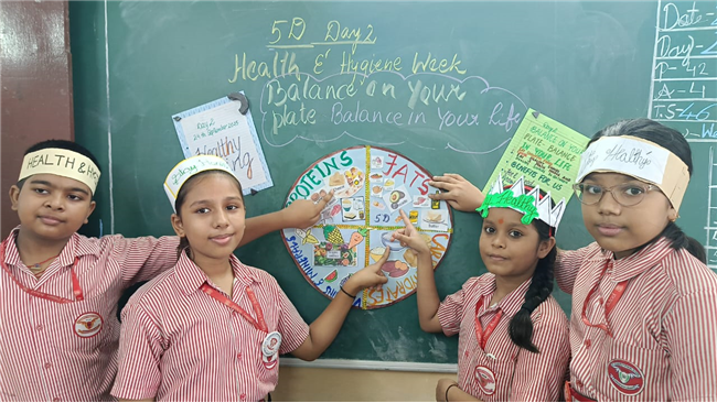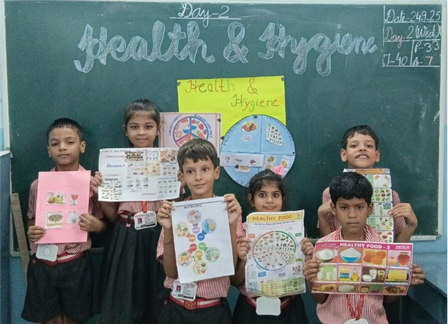 Day 2 of Health and Hygiene Week for Std 1 to 5 focussed on the importance of healthy eating. The day began with an inspiring assembly where students shared thoughts on balanced diets, followed by a skit on “Junk Food vs Healthy Food” where teachers highlighted the benefits of good food choices.
