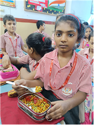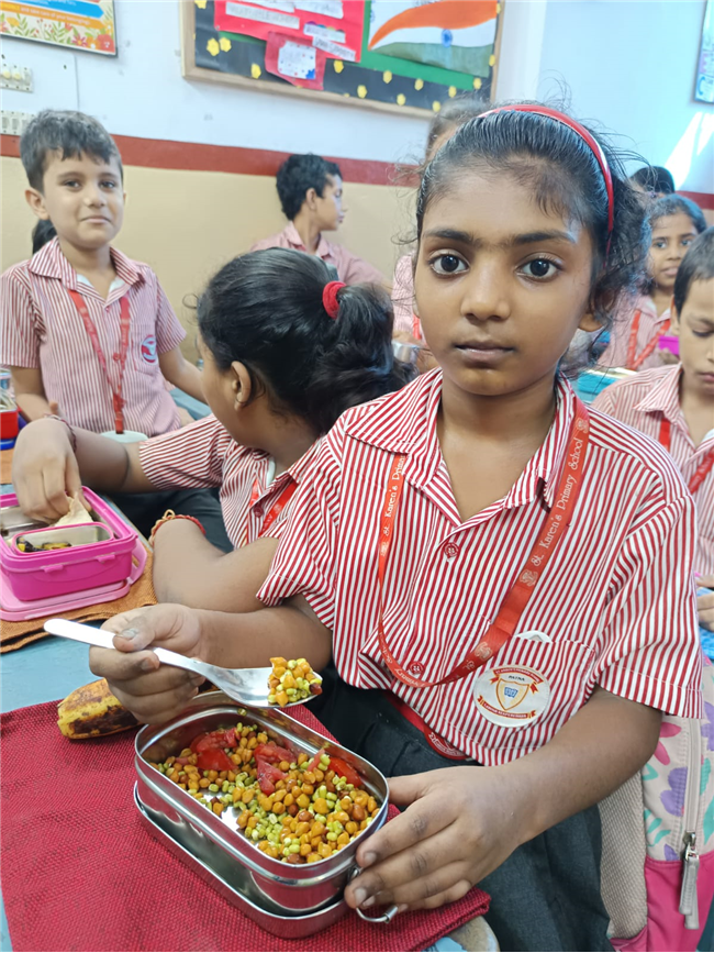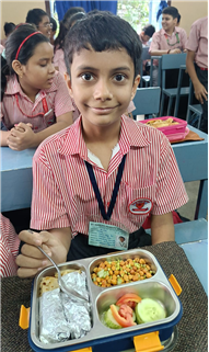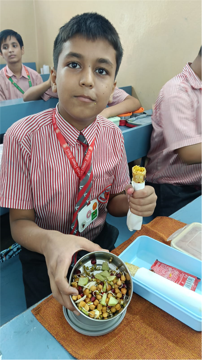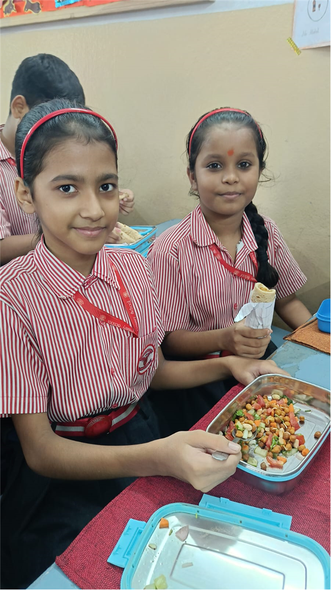 To match the theme, the Tiffin Break menu included sprouts chaat and roti rolls with paneer/soya, proving that nutritious food can also be delicious. The day ended with reflection questions, reinforcing the promise to choose healthy snacks and say no to junk.